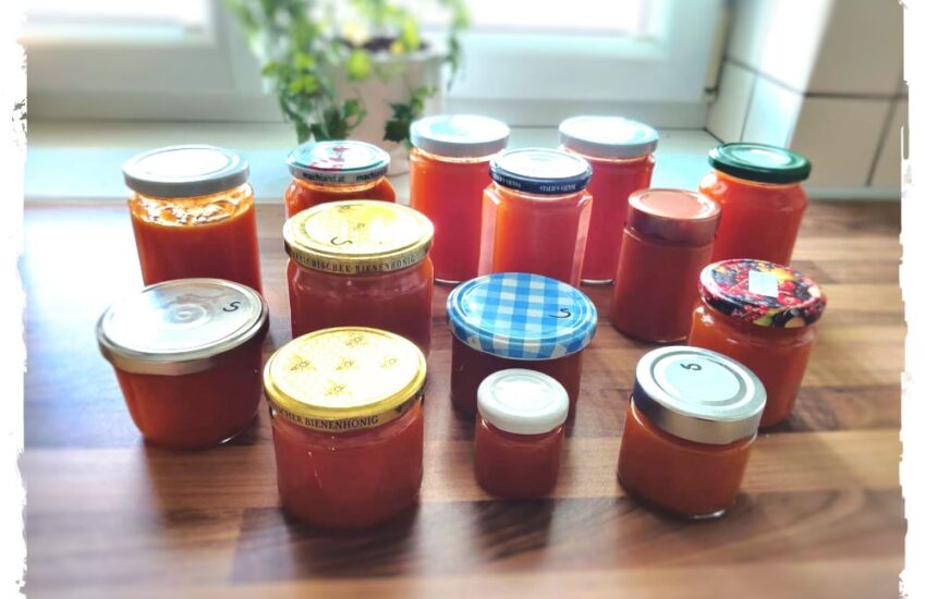 TIPP: Die Einsiedehilfe sorgt für längere Haltbarkeit von aromatisierten Getränken, Marmeladen und Gelees und unterdrückt eine vorzeitige Gärung. - Die Flaschen auskühlen lassen und als Vorrat im Keller dunkel und bei halbwegs konstanter Temperatur lagern (oder sofort genießen)